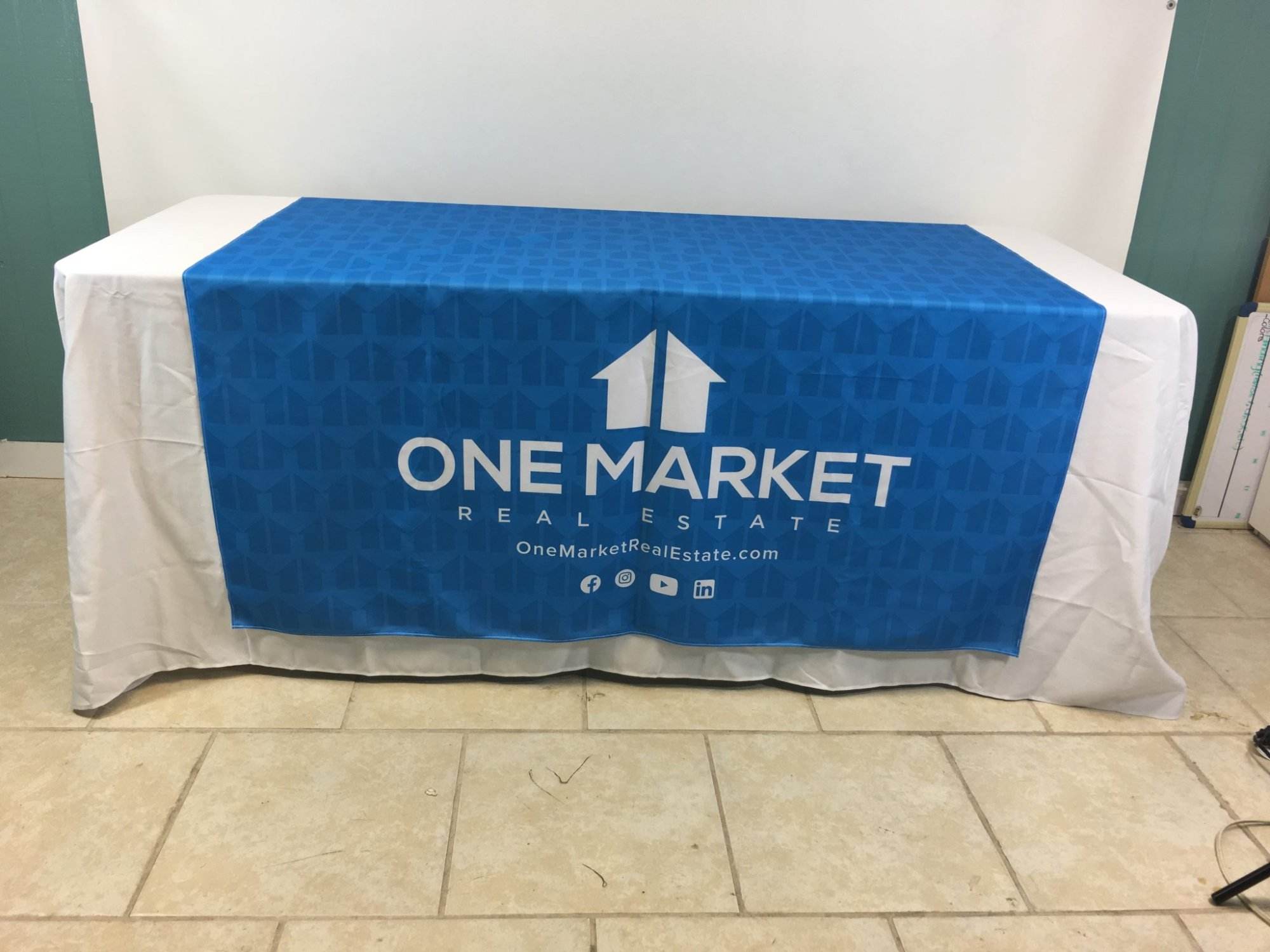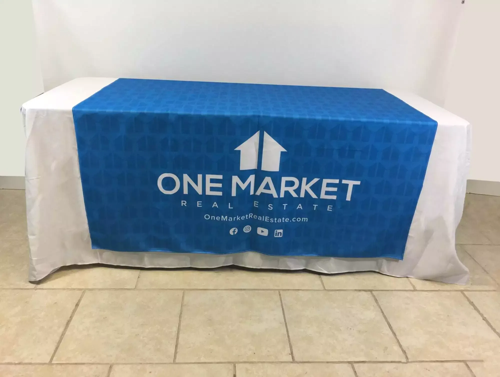 - We understand and pay attention to our client’s unique brand characteristics too. As such, we do deliver customized table cloth with logo as well. It is to make sure that we can supply the best and most fitting table banner for your brand.