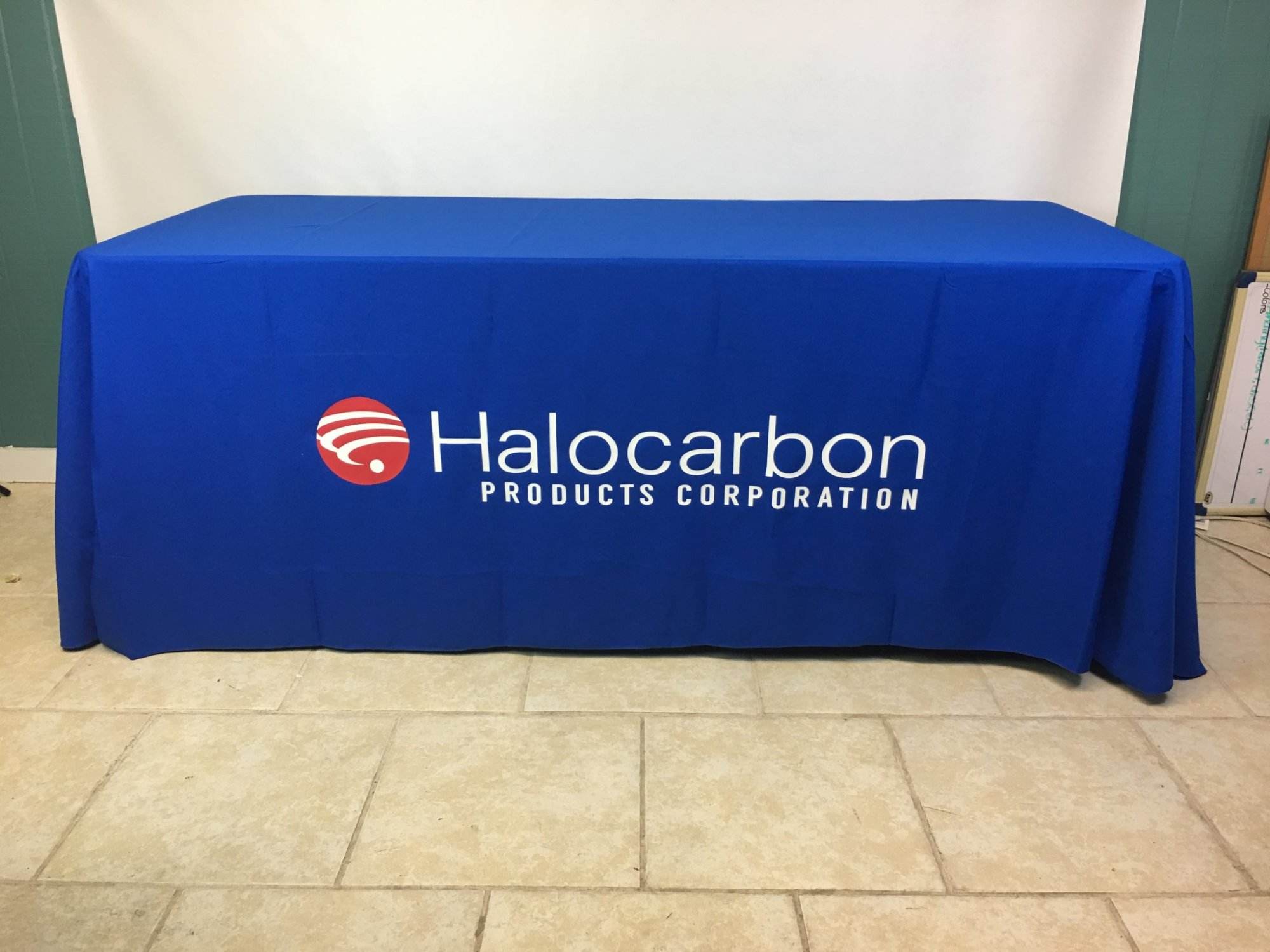 Depending on the type of table cover your options may be limited imprint method. Thermal imprints: 1 color table colors are priced by color, full color imprint gets a max imprint of 17×42″ on stock color table covers vs dye sublimation which starts out as white and you print your background/artwork on any part of the full material.